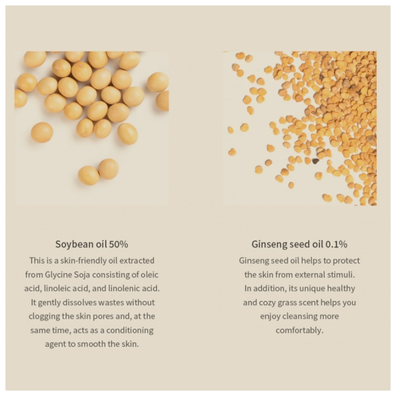 Απαλό έλαιο καθαρισμού προσώπου που είναι αποτελεσματικό ως προς την αφαίρεση ρύπων και σμήγματος από τους πόρους. Η σύνθεση περιλαμβάνει έλαια από ginseng και soybean, καθώς και άλλα φυτικά εκχυλίσματα. Επιπλέον,  βοηθάει αποτελεσματικά στην απομάκρυνση του μακιγιάζ, ενώ παράλληλα θρέφει και ενυδατώνει την επιδερμίδα. Επίσης, παρέχει μια αίσθηση ευεξίας και αναζωογόνησης.