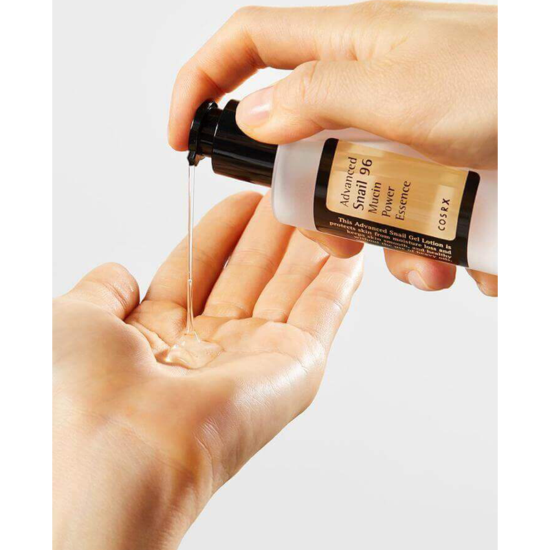 Το Advanced Snail 96 Mucin Power Essence είναι ένα ελαφρύ και καταπραϋντικό essence. Επιτυγχάνει να αυξήσει την οργανική λάμψη. Διεισδύει αβίαστα σε όλους τους τύπους δέρματος. Επίσης,το Advanced Snail 96 Mucin Power Essence θρέφει τα κατεστραμμένα τμήματα του δέρματος από μέσα προς τα έξω. Εκτός αυτού, το βασικό συστατικό Snail Secretion Filtrate δημιουργεί μια αξιόπιστη ασπίδα ενάντια σε κάθε είδους εξωτερικές απειλές, και προωθεί την ελαστικότητα και την απαλότητα. Έτσι, η ερυθρότητα ή ο ερεθισμός τείνουν να μειωθούν, καθώς η επιδερμίδα μας βιώνει μια διαδικασία αποτελεσματικής επούλωσης. Στην πραγματικότητα, αυτή η επιλογή είναι ιδιαίτερα χρήσιμη μετά από ξεσπάσματα, όταν το δέρμα με τάση ακμής αντιμετωπίζει υπερβολικό σμήγμα.