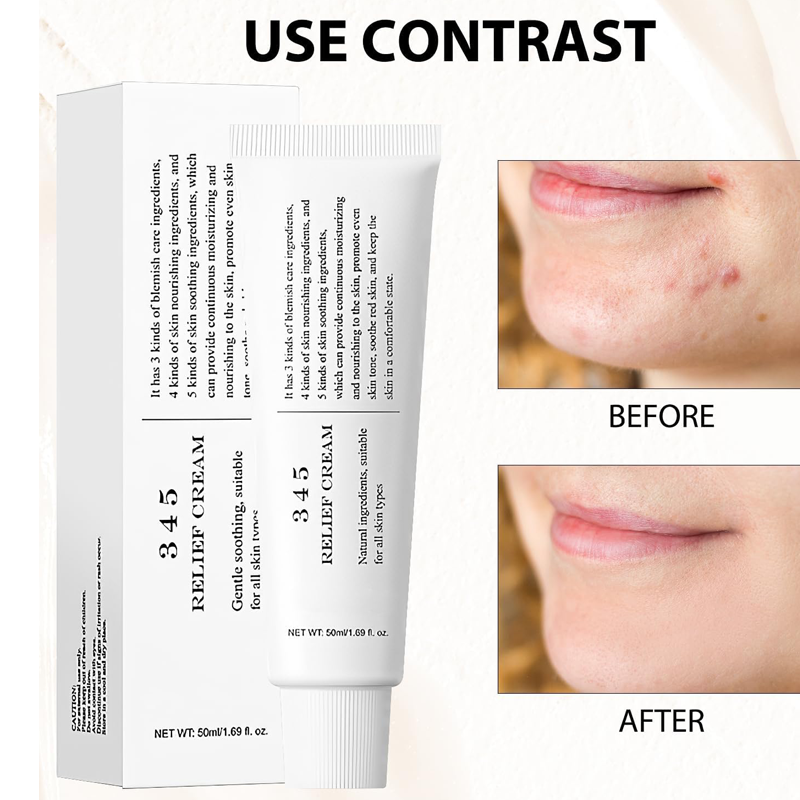 Συνολικά, η 345 Relief Cream προσφέρει μια ολοκληρωμένη λύση για την αναγέννηση και την ενυδάτωση της επιδερμίδας, αντιμετωπίζοντας αποτελεσματικά τις ατέλειες και προάγοντας έναν υγιή, ομοιόμορφο τόνο δέρματος.